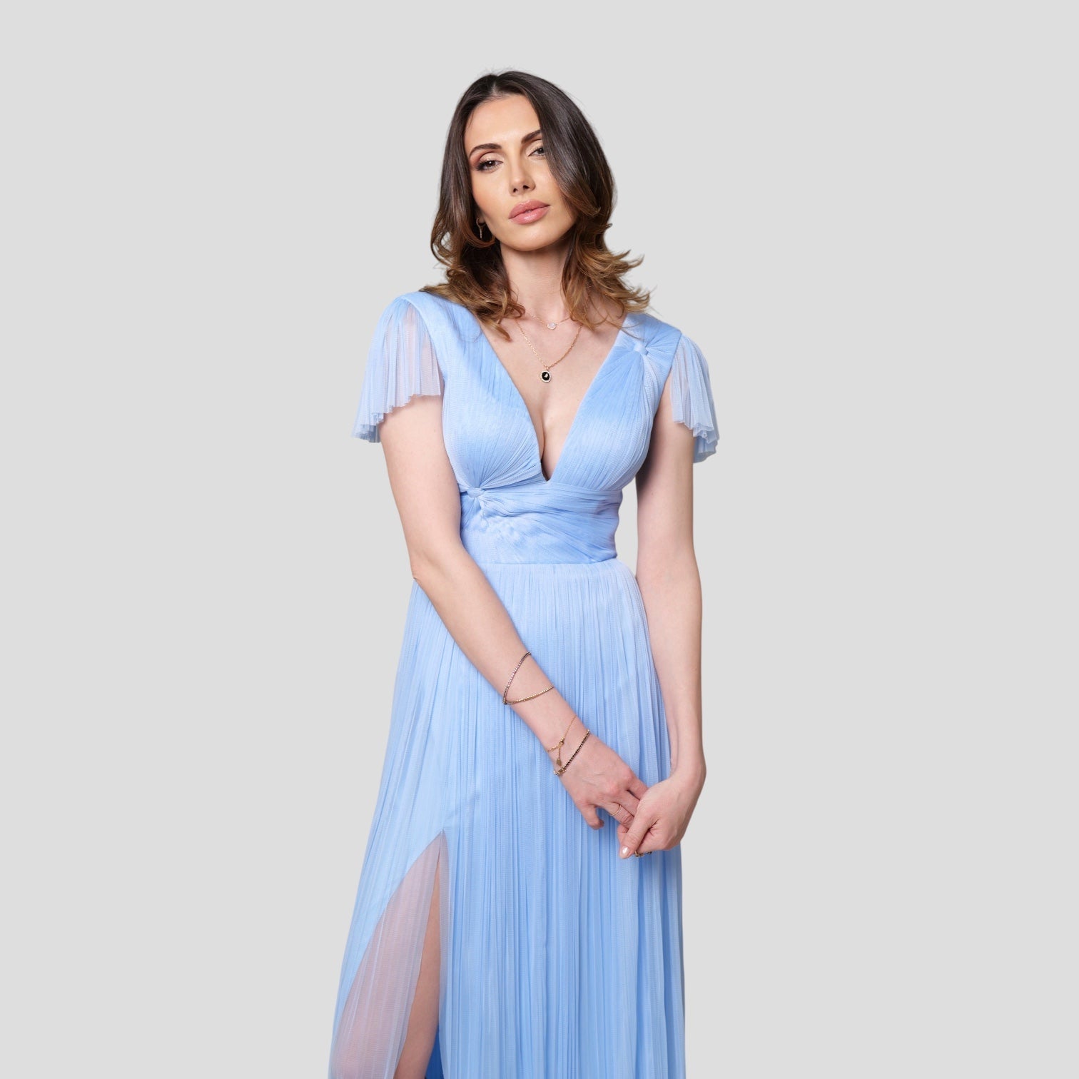Descoperă rafinamentul prin rochia ADELINA. Confecționată din cel mai delicat tulle de bumbac fronsat manual, această rochie lungă cu top din corset îți va oferi o eleganță desăvârșită. Căptușeala este concepută din vâscoză.