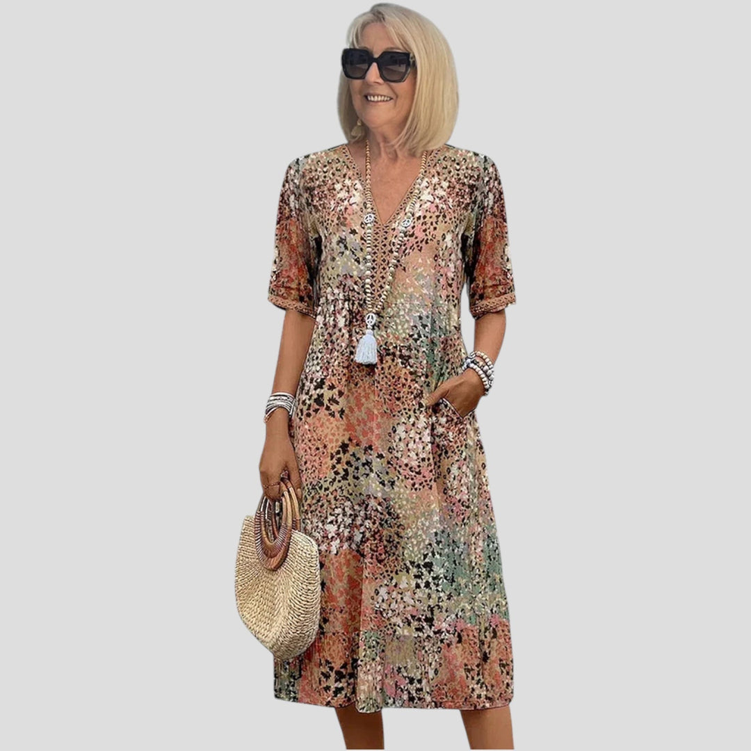 Nele – Rochie de Damă Midi Elegantă cu Mâneci 3/4 și Buzunare