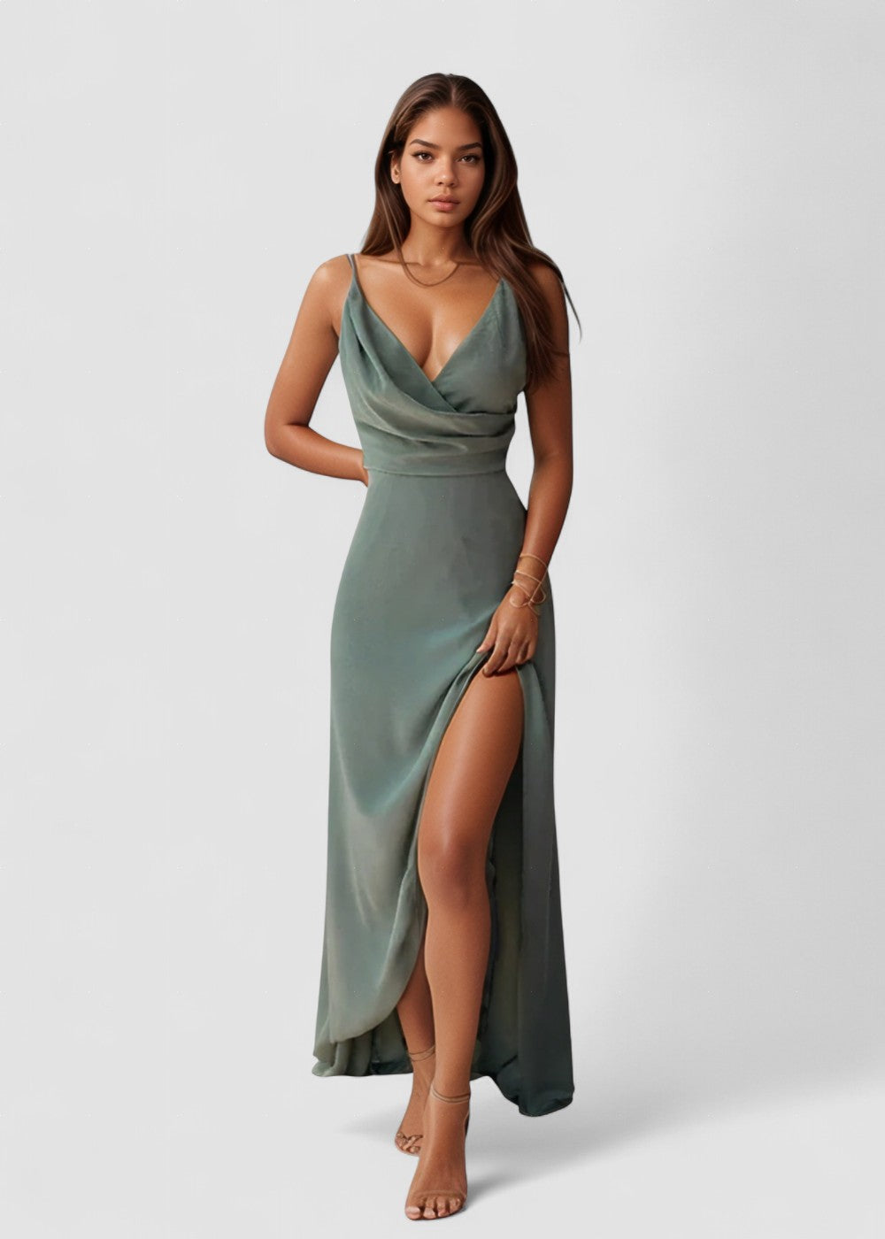Mila – Rochie Satinată Elegantă cu Decolteu în Formă de Apă și Fante